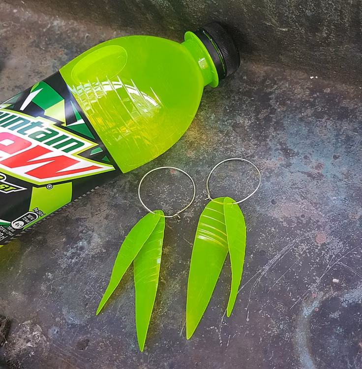 Handgjorda örhängen av sterlingsilver och hängen av återvunna plastförpackningar. Hängena är utskurna på känsla,för hand så varje löv får sin egen karaktär och