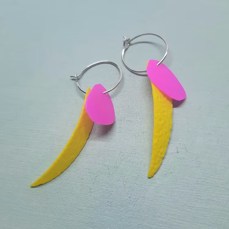Handgjorda örhängen av sterlingsilver och hängen av återvunna plastförpackningar. Hängena är utskurna på känsla,för hand så varje löv får sin egen karaktär och kan skilja sig något från varandra.