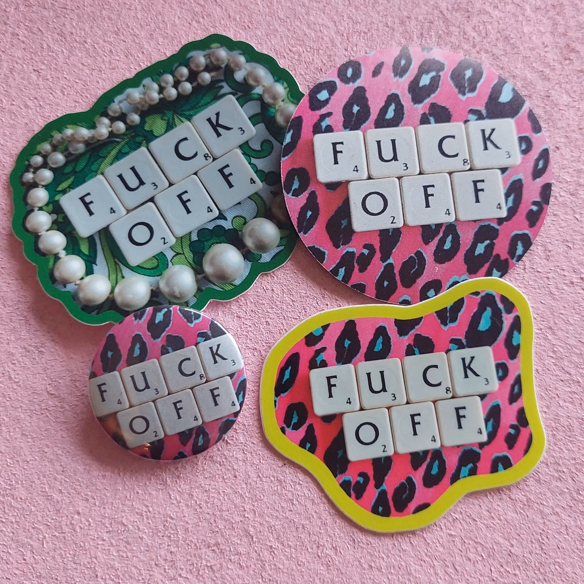 FUCK OFF-paketet innehåller:2 st klistermärken1 st liten pin1 st rund kylskåpsmagnet(Ordinarie pris för alla produkter skulle vara 105 kr.)