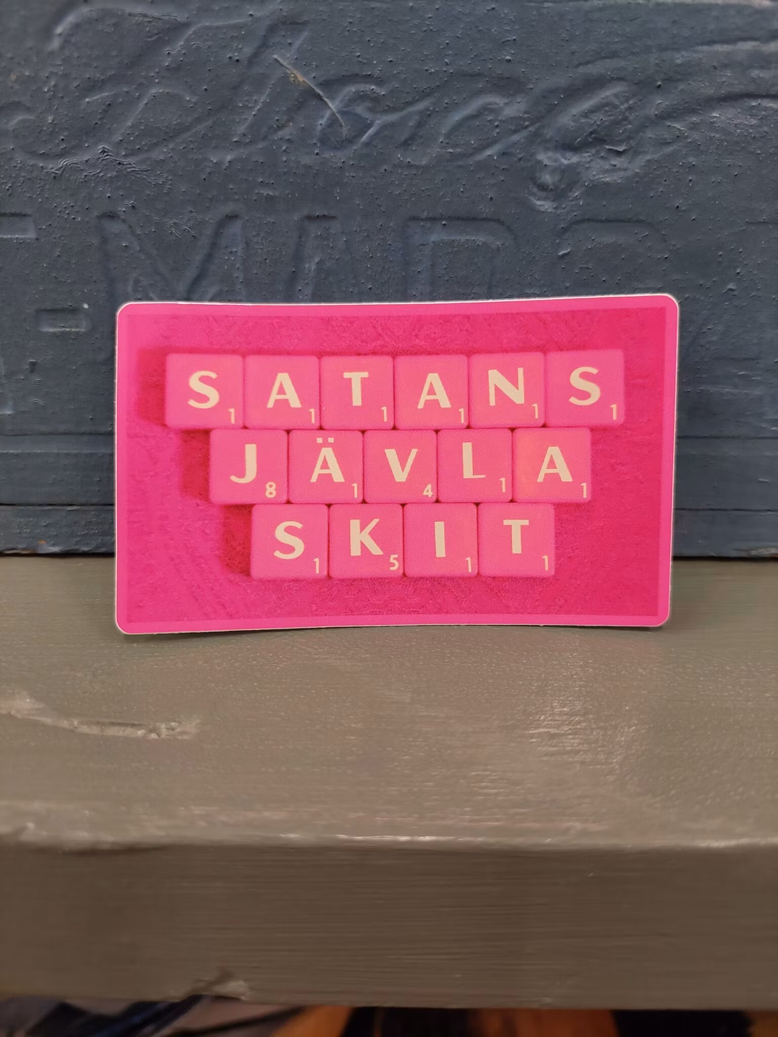 Klistermärke - SATANS JÄVLA SKIT - ROSA 20 kr Fräsigt klistermärke att placera efter behov å behag! Mått: 8,5 x 5 cm Köp Lagersaldo: 3 Dela Info Fräsigt klistermärke att placera efter behov å behag! Mått: 8,5 x 5 cm