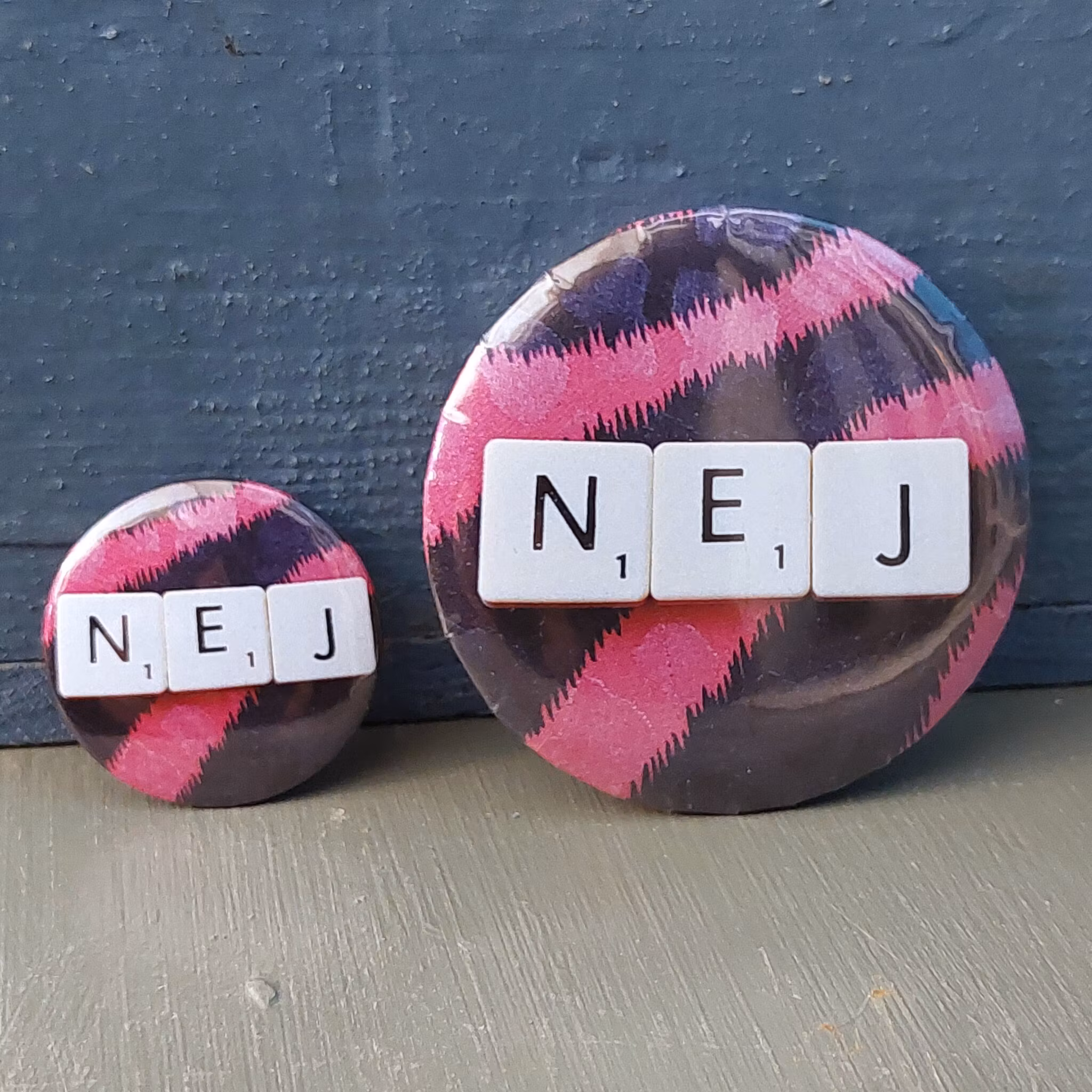 PIN - NEJ (rosasvart) 30 kr PIN (säkerhetsnål) med fräsigt motiv! Välj storlek: mått 32 / 58 mm Välj storlek Liten - 32 mm Stor - 58 mm Köp Lagersaldo: Dela Info PIN (säkerhetsnål) med fräsigt motiv! Välj storlek: mått 32 / 58 mm